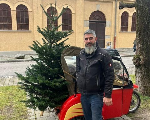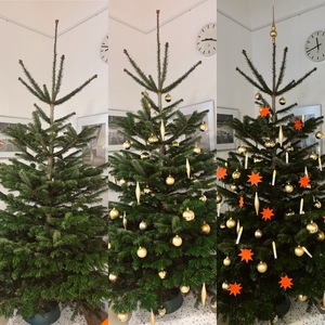 Um die Studierenden wie Dozierenden am Studienkolleg München in Weihnachtsstimmung zu bringen, darf ein Weihnachtsbaum im Eingangsbereich natürlich nicht fehlen. Der Baum selbst wurde dieses Jahr standesgemäß von unserem Hausmeister, Herrn Gaudermann, im Beiwagen eines Moped-Gespanns, einer Krause Duo, angeliefert (Video). Auch das Schmücken wurde in Form einer Collage festgehalten. Damit der Baum an den eigentlichen Feiertagen auch anderen Menschen Freude bereiten kann, soll er zu Ferienbeginn für einen karitativen Zweck weitergegeben werden.